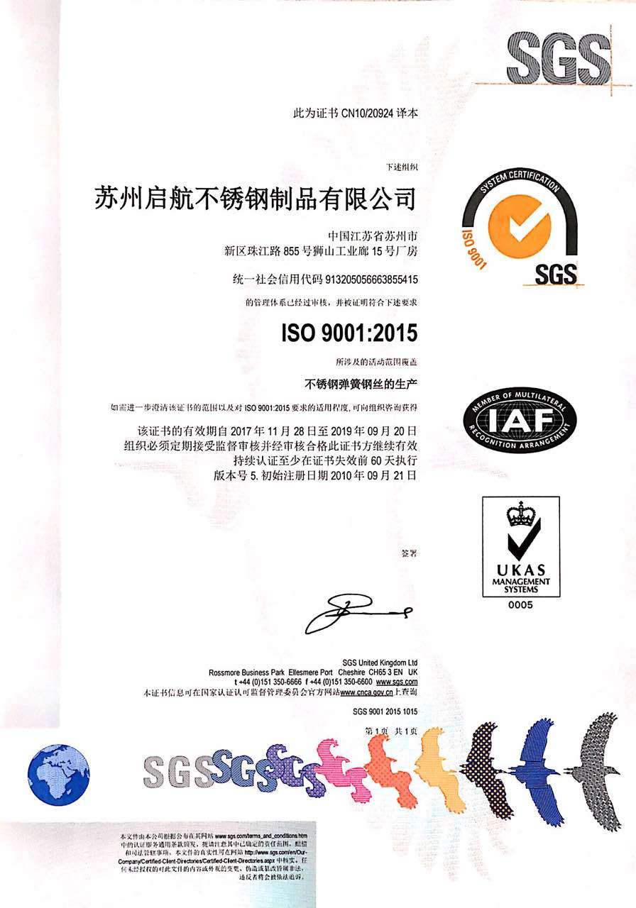 啟航通過量身定做的ERP管理系統(tǒng),實現(xiàn)了對生產(chǎn)流程的全程管理監(jiān)控,所有產(chǎn)品、原料、設(shè)備、人員都可實現(xiàn)批次號追溯;原料方面只選采國內(nèi)外優(yōu)質(zhì)母材,絕不為節(jié)約成本偷工減料;標(biāo)準(zhǔn)化日式生產(chǎn)管理流程,嚴(yán)格遵守作業(yè)指導(dǎo),定期定時進行產(chǎn)線培訓(xùn)與考核;與多家高校共同合作、研發(fā)應(yīng)用于不同領(lǐng)域與不同性能要求的彈簧產(chǎn)品;自主改良產(chǎn)線設(shè)備、融入先進日韓生產(chǎn)元素,與時俱進,堅持技術(shù)革新;在行業(yè)內(nèi)率先通過ISO9001:2015、ISO14001:2015、 IATF16949:2016體系認證;并配合客戶為特殊工藝的彈簧要求進行量身定制。